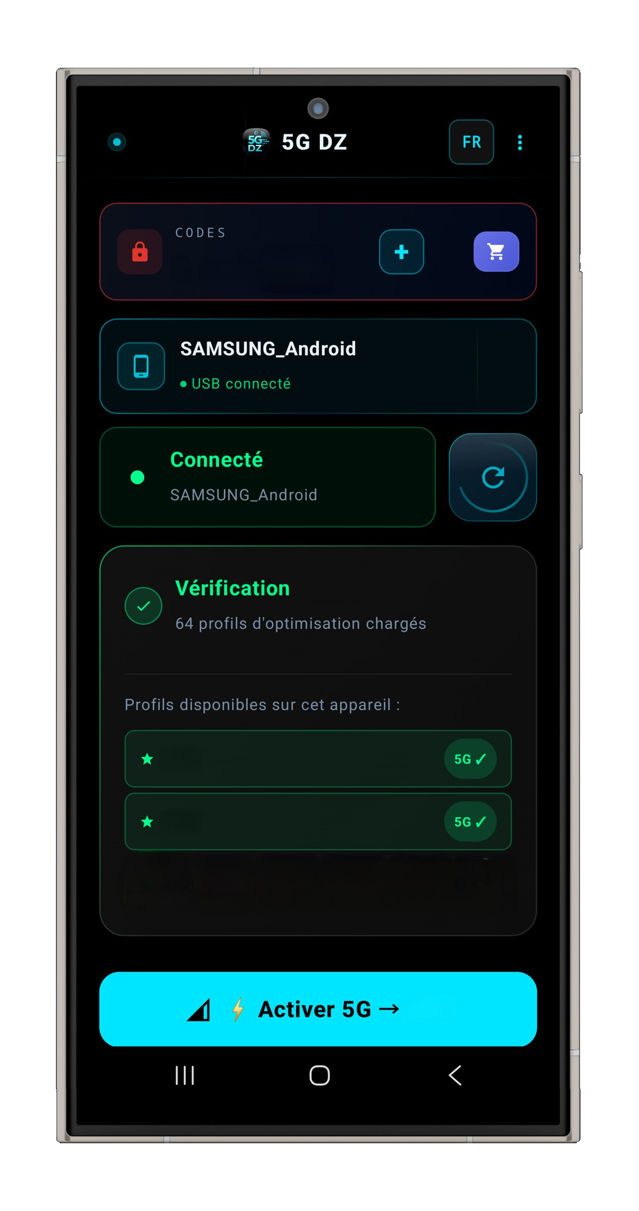 Votre Samsung est déjà prêt pour la 5G. Le problème ? Un verrou logiciel. 5G DZ l'ouvre proprement, sans root, sans risque — et vous profitez enfin du réseau que vous méritez.